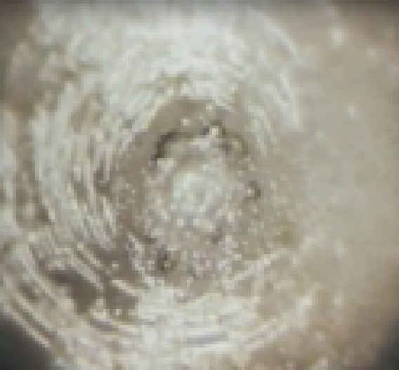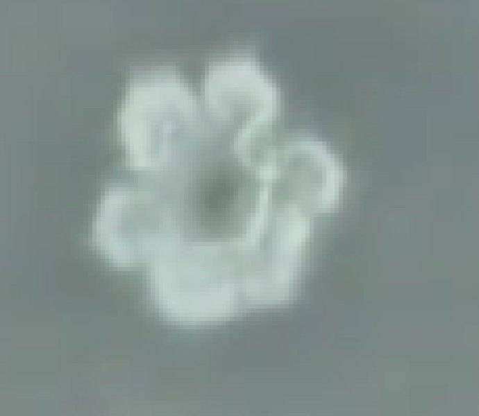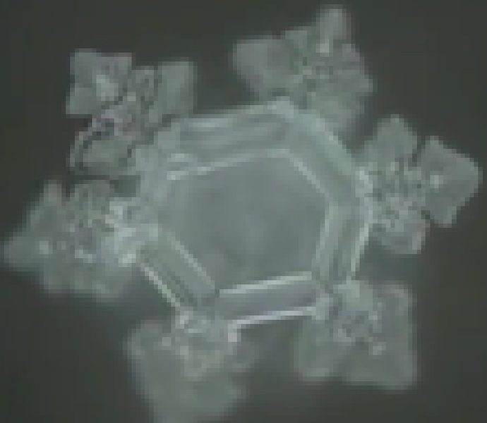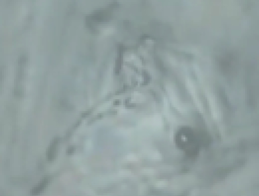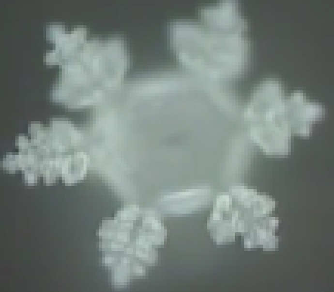 Un petit cristal commence à apparaitre sous le microscope et évolue en cristal équilibré.